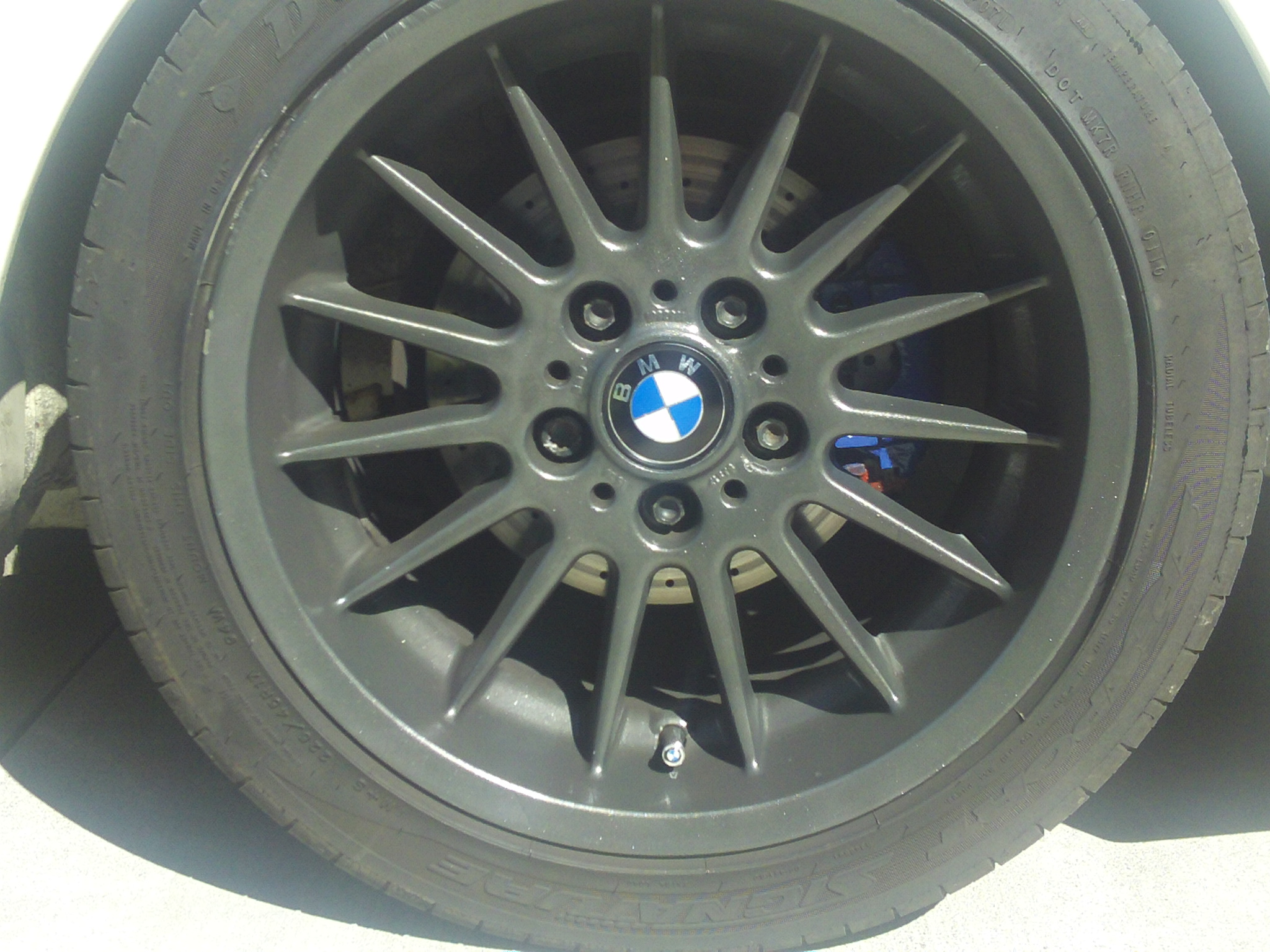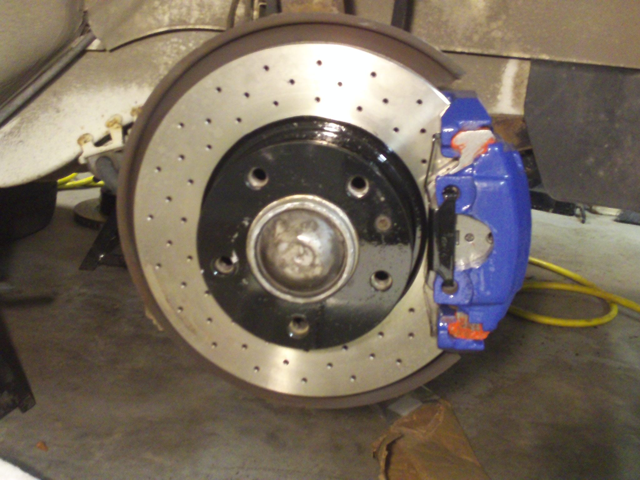 I’ve said this before and I’ll say it again, the thing about owning old BMWs is they always need some kind of work, but the great thing about old BMWs is a normal person with a little bit of mechanical know how can work on them. My latest “work” was to upgrade braking ability. Speed is fun but stopping is equally important. I found some cross drilled rotors with close out prices and brake pads also at a great price, so the logical thing to do was to paint the calipers as well for a complete awesome upgrade for Elka (my white ’87 e28). I have had these parts for several months and when she needed repair for a battery drain somewhere in the electrical system, it was time to put her up on jack stands and spend some quality time!