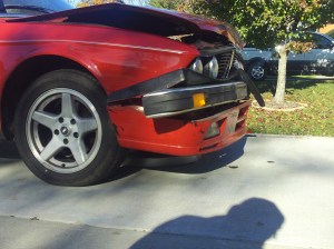 We are truly thankful that Sarah was unharmed in her recent accident. She and I are aware that her health is the number one issue here, so you need not remind us to be thankful yet again. But we do want room to grieve the loss of our “Bernie”, the red BMW 535is. As of this writing we are waiting to hear from the insurance folks who will decide her fate. My estimation is that she will be totaled and I will have to buy her back so that I will have lots of parts for #1 BMW, “Elka”. There is some frame damage and as I see it all of the front end would need replacement. I am already planning to transplant her antennae into Elka, the white BMW 535is. It is only fitting since, about a month ago, Elka gave up a window motor for Bernie, not to mention an alternator until a new one was purchased.