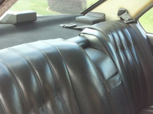 After getting a price higher than I was willing to pay for upholstering rear seat, I decided to try the re-dye project on the leather.  The front seats were terribly worn and torn, but the back seat was in fairly good condition only the wrong color for my plans to transform all the interior to black.  Ordered kit from Leatherique (highly recommend) and started a few weeks ago on the reconditioning of seat before dye.  After sanding, cleaning, dying, here it is looking like new!!