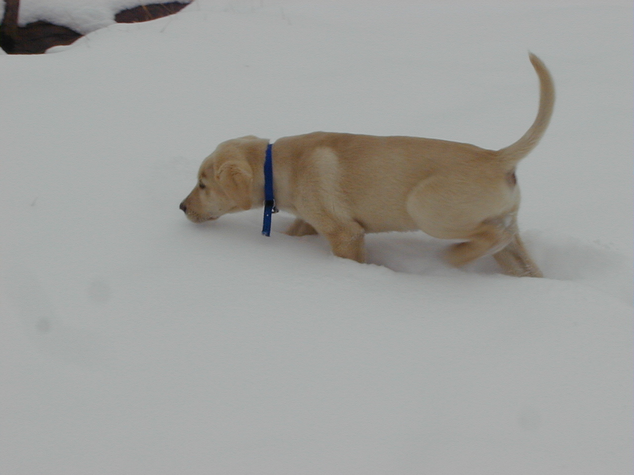 Blogging is something Zeke has considered for a long time since I tell him about the blogs I read. He is an introverted dog, so the thought of blogging to the cyber world is a little bit daunting. It was a warm day yesterday and Zeke spent some time chasing a big ball that had blown into the back yard. He cooled off by prancing through the water in the ditch. Yellow labs look even more dirty after mudding up the paws. He enjoyed the warm sunny Sunday afternoon before tucking in to his dog house for the night. He was not happy when I told him to expect snow tomorrow.